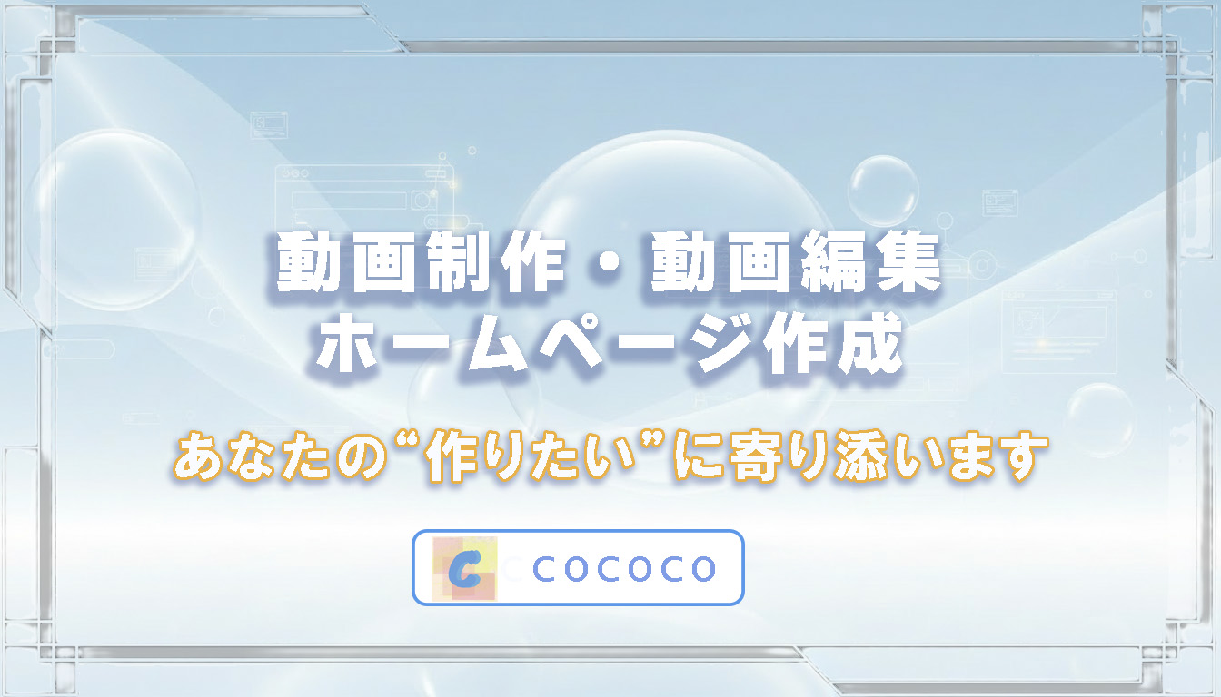 HOME 2025-11-282025-12-04 Crafting Your Visuals 動画制作・動画編集・ホームページ作成 Scroll New Post 飲食店さま向けホームページ・《作成サンプル》 2025-12-012025-12-04 ホームページ作成のお手伝いします!《作成サンプル》 2025-11-292025-12-04 【動画編集】面倒なテロップ挿入の依頼受付中です! 2025-11-292025-12-01 はじめまして|MV・PV制作のご依頼受付を開始しました 2025-11-232025-12-01 Category 動画制作 あなただけのオリジナル動画を作ってみませんか♪ 詳しくみる→ ホームページ作成 初心者の方にオススメ!ホームページ作成のお手伝いをします! 詳しくみる→ デザイン 今後、バナー広告等を制作する予定です(只今準備中) 詳しくみる→ Popular ホームページ作成のお手伝いします!《作成サンプル》 2025-11-292025-12-04 飲食店さま向けホームページ・《作成サンプル》 2025-12-012025-12-04 はじめまして|MV・PV制作のご依頼受付を開始しました 2025-11-232025-12-01 【動画編集】面倒なテロップ挿入の依頼受付中です! 2025-11-292025-12-01 cococo Web制作・動画クリエイターのこコこです。 オリジナル動画制作や動画編集、ホームページの作成など、心を込めてお手伝いさせていただきます。 ーillustration:くろわっさんー cococoをフォローする